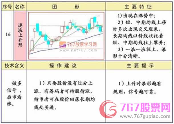 短期,中期均线上移时多次出现交叉现象,长期均线以斜线状托着短期,中期均线往上攀升。一浪一浪往上,上升十分清晰。上升时浪形越有规则,信号越可靠。