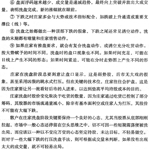 庄家无论用什么样的洗盘方式,都会在盘面上留下洗盘阶段的特征,作为散户要注意捕捉这些特征: