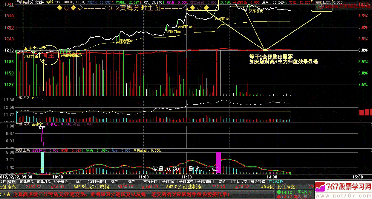 突破前高+主力扫盘效果显著+横盘(放量)突破在尾市=涨停预警分时主图