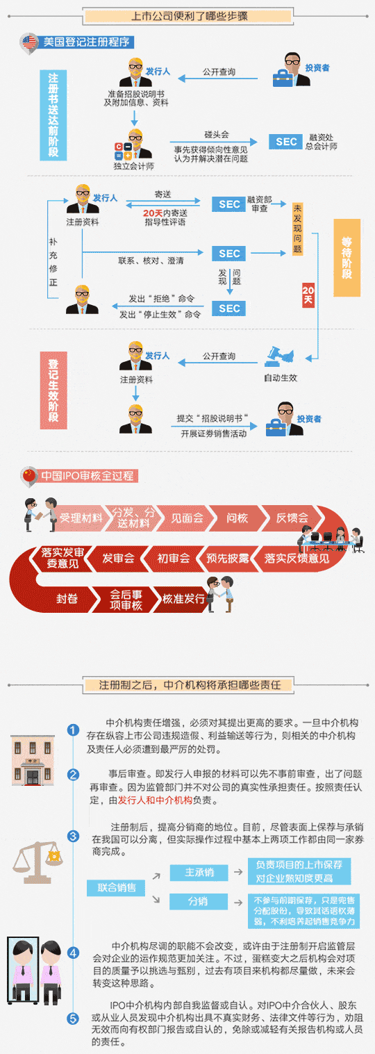 A股注册制是什么意思?注册制与核准制有什么区别?上市公司便利了哪些步骤?中介机构承担哪些责任?下面详细介绍: