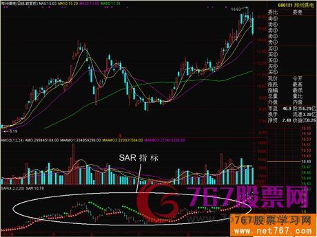 在分析家软件上,SAR指标构成比较简单,主要是由SAR曲线和股价K线构成。SAR指标在分析软件上的研判和分析在上面已经讲到,这里就不展开论述。