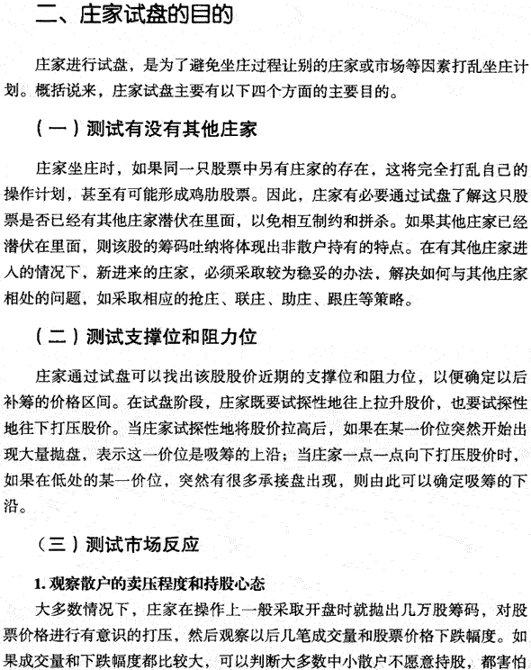 通常庄家在吸筹建仓完成后并不会马上进入拉高股价的阶段,而是要先对盘口进行一次全面的测试,即试盘