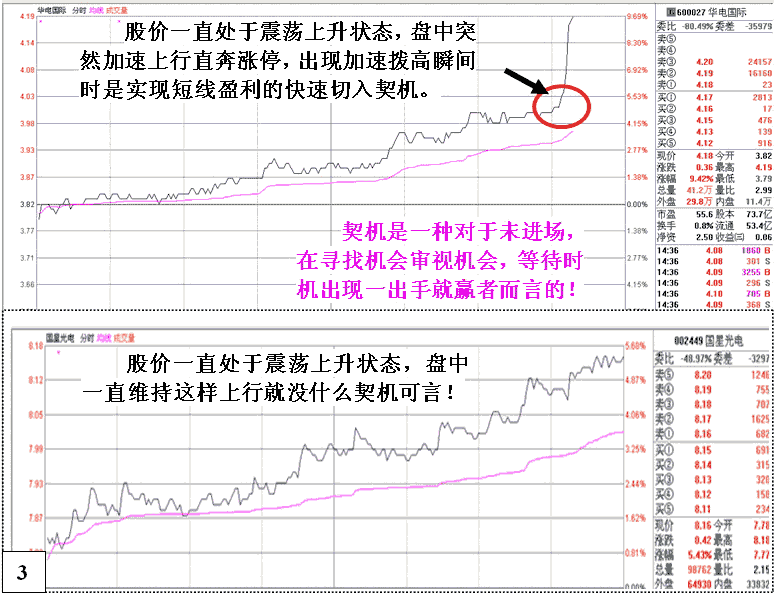 契机不是想有就有,一般性的升升跌跌算不上什么契机。契机出现代表转机在瞬间出现,个股由慢升状态转为加速上升,转势瞬间就是契机。