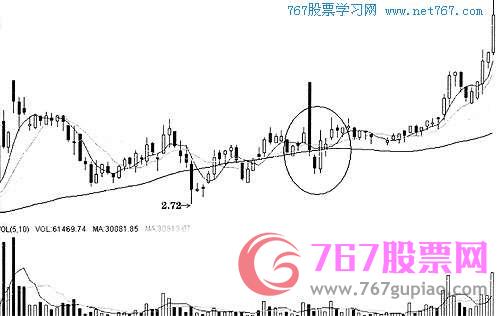 在调整中,经常出现单日的冲高回落,在单日的K线中留下长长的上影线,接着出现阴线,这种情况出现在前期放量吸筹形态后的个股中时要尤为注意,这是控盘主力的刻意所为,是急于消化前期高点的压力。而后股价会被快速拉起。
